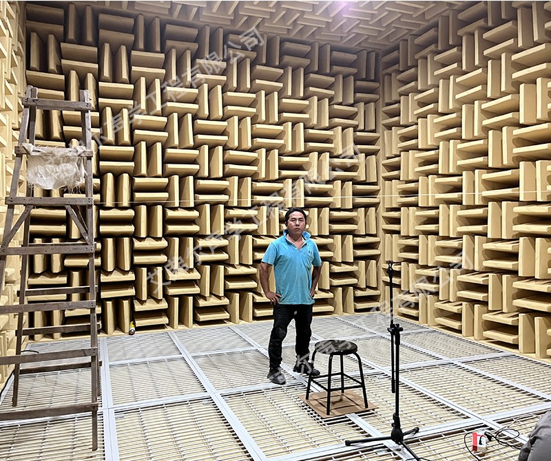 使用特殊的吸聲材料,如吸聲尖劈(wedge)、吸聲板等,覆蓋實驗室的所有表面。